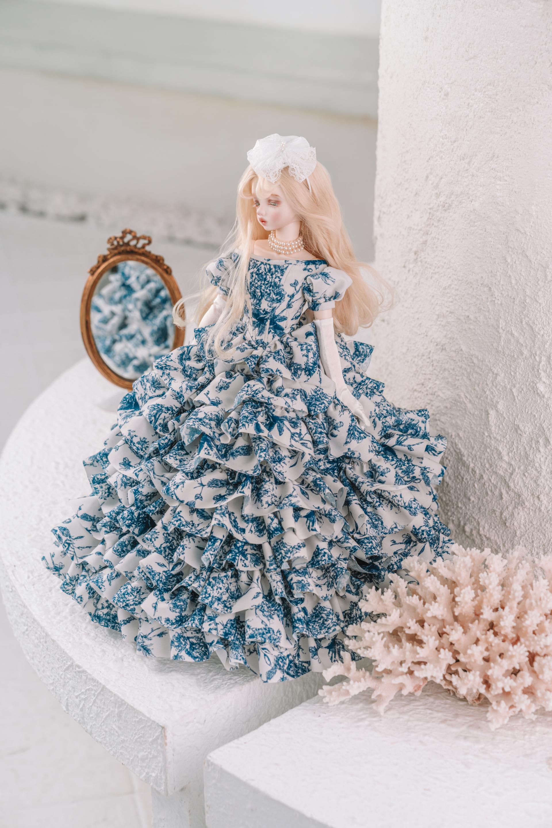 스커트는 동그랗게 퍼지는 구조적인 볼륨 형태로 설계되어, 각도에 따라 풍성함이 또렷하게 드러나며 화려함을 자연스럽게 연출합니다.